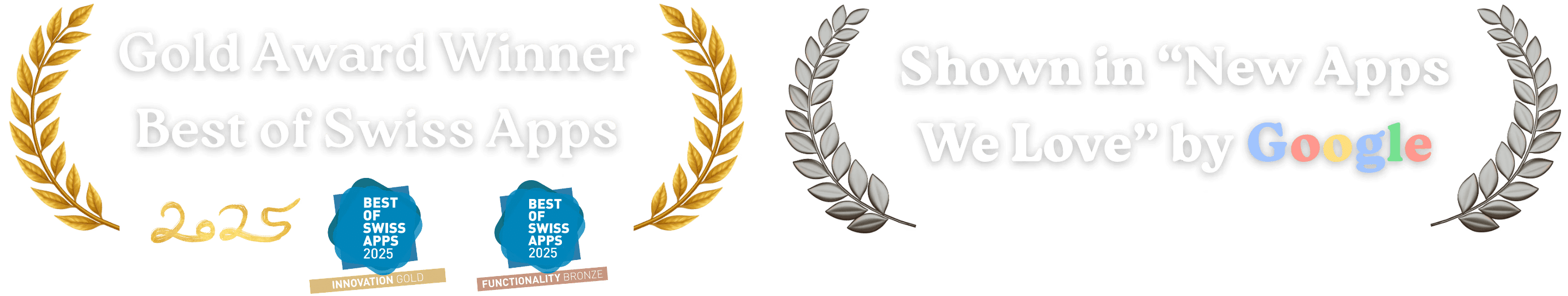 Recently, Eiren AI was featured by Google in “New Apps We Love” — and won Gold in Innovation and Bronze in Functionality at Best of Swiss Apps! 🏆